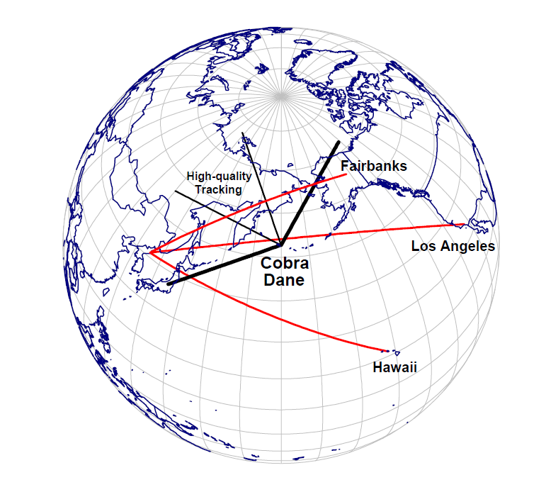 In terms of missile defense, the impact of these temporary (presumably) cutbacks in radar operations seems pretty minimal. PARCS is not part of the current GMD national missile defense system, and the AFSSS does not have (and cannot be given) any ballistic missile defense capabilities. While Cobra Dane has been part of the GMD system since the GMD was first declared operational, because of its poor orientation it has never participated in an intercept test. While Cobra Dane can potentially provide much higher resolution radar data than the Pave Paws radar in California, it can only do so within a narrow region within 22 degrees of its boresite, which a missile from North Korea towards the U.S. west coast would spend little if any of its trajectory within (as shown in figure above). Nor does removing these radars from the early warning network open up any gaps in the coverage provided by the five BMEWS and Pave Paws early warning radars.
