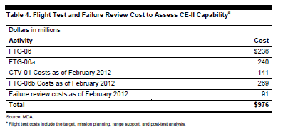 (5) In 2012, GAO reported that as of February 2012 the cost of the testing the CE-II kill vehicle had reached nearly $1 billion. These costs are shown in Figure 1 below:[5]