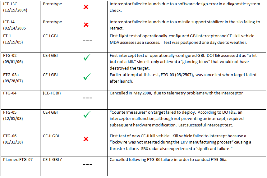 (4) When the first flight and intercept of this new version of the GBI ultimately took place in early 2010, it failed. However, the MDA simply continued to deploy them as if there were no problem.