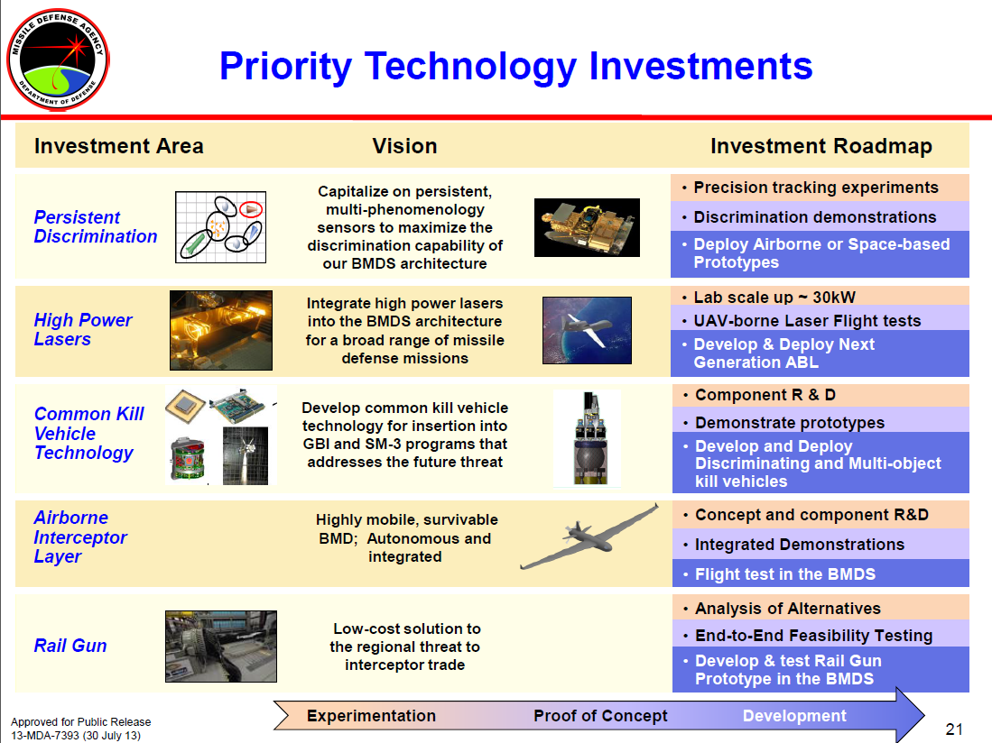 Finally, the September 2012 NAS Report proposed the deployment of five new X-band radars for precision tracking and discrimination. Each of these proposed radars would be built using two TPY-2 antennas stacked one on top of the other. Five such stacked TPY-2 radars would thus consume production resources equivalent to ten TPY-2 radars. A February 2013 MDA report stated that such a stacked TPY-2 radar would take 30 months to develop and produce “assuming that two existing radars were made available for testing and integration.”[4] If two already existing radars were not made available (which seems unlikely given the short supply of such radars), at least 63 months would be required to build such a stacked TPY-2 radar, “based on current radar production times.” The report estimated that a stacked TPY-2 would cost “at least $500 million.” While building such a network of stacked TPY-2 radars would clearly have a huge impact on TPY-2 production, they do not currently appear to currently be MDA’s preferred option for adding new radar capabilities, at least based on the MDA’s February 2013 report’s conclusion (presented without any supporting analysis) that “alternative concepts would provide a more robust capability for less cost.”
